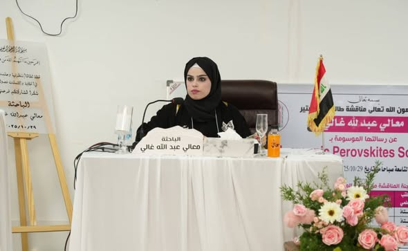 نوقشت رسالة ماجستير في كلية التربية للعلوم الصرفة، وذلك في قاعة الشهيد السيد حسن نصر الله ، لقسم الفيزياء، بعنوان ” Inorganic Perovskites Solar Cells ” (الخلايا الشمسية البيروفسكايتية غير العضوية) للباحثة (معالي عبدالله غالي) .