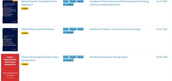 موقع Define PK للأبحاث الأكاديمية والكتب العلمية الباكستاني يعرض في واجهته الرئيسية على الشبكة العنكبوتية مشاركة الأستاذ الدكتور إحسان فليح حسن في تأليف (12) أثنى عشر كتابا علميا عالميا تمت طباعتها في المؤسسة الألمانية العالمية Springer ومؤسسة السفير Elsevier الهولندية العالمية ، كما أن هذا الموقع يعرض ملايين الكتب والأبحاث العلمية المنشورة حول العالم .