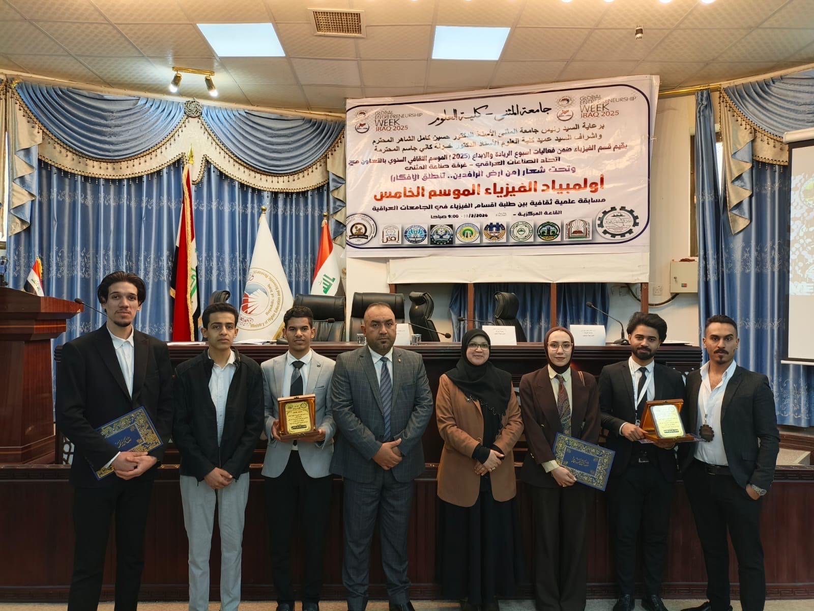 بفضل الله تعالى، حقق قسم الفيزياء المركز الثاني على مستوى الجامعات العراقية في المسابقة العلمية المقامة في جامعة المثنى – كلية العلوم – قسم الفيزياء،