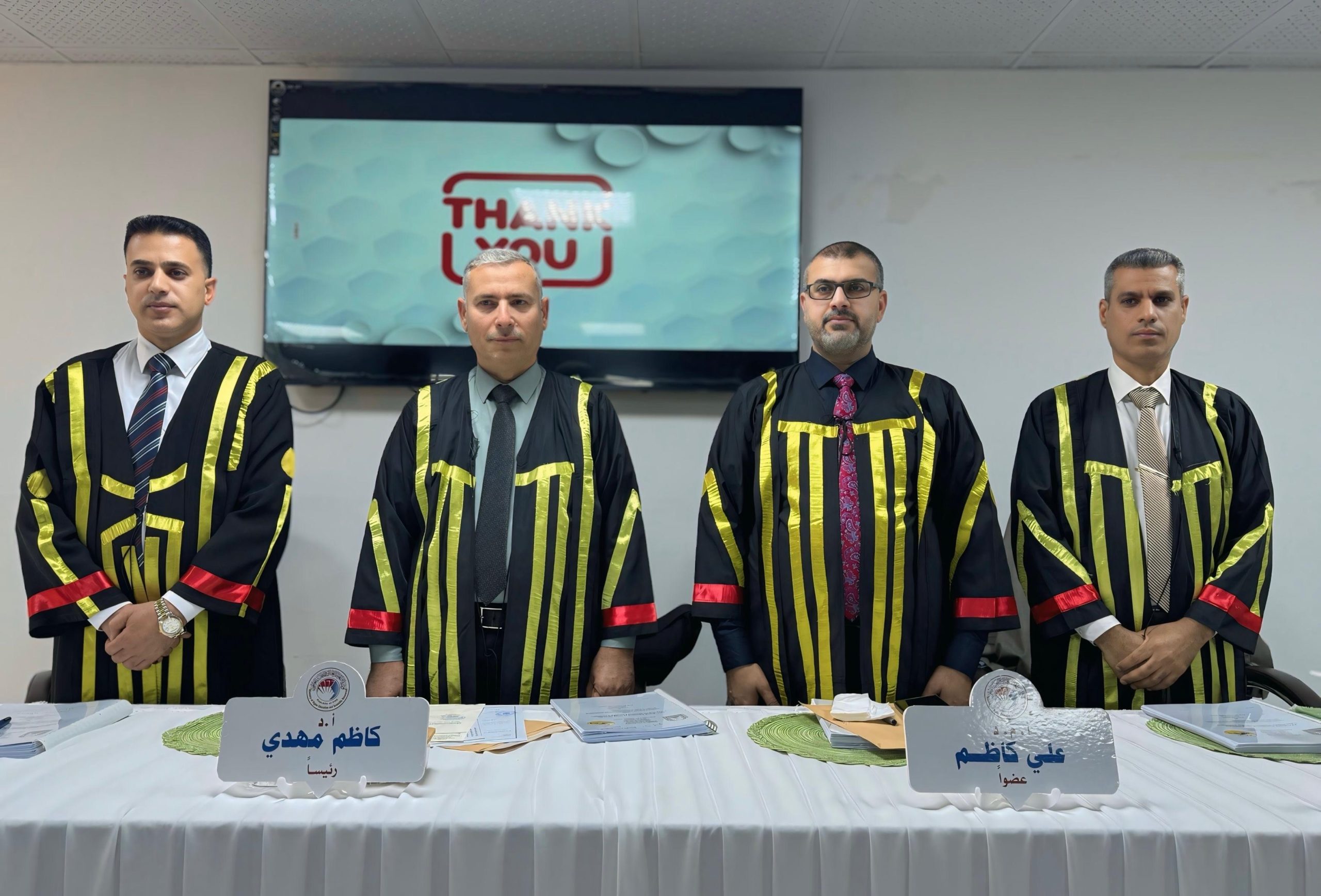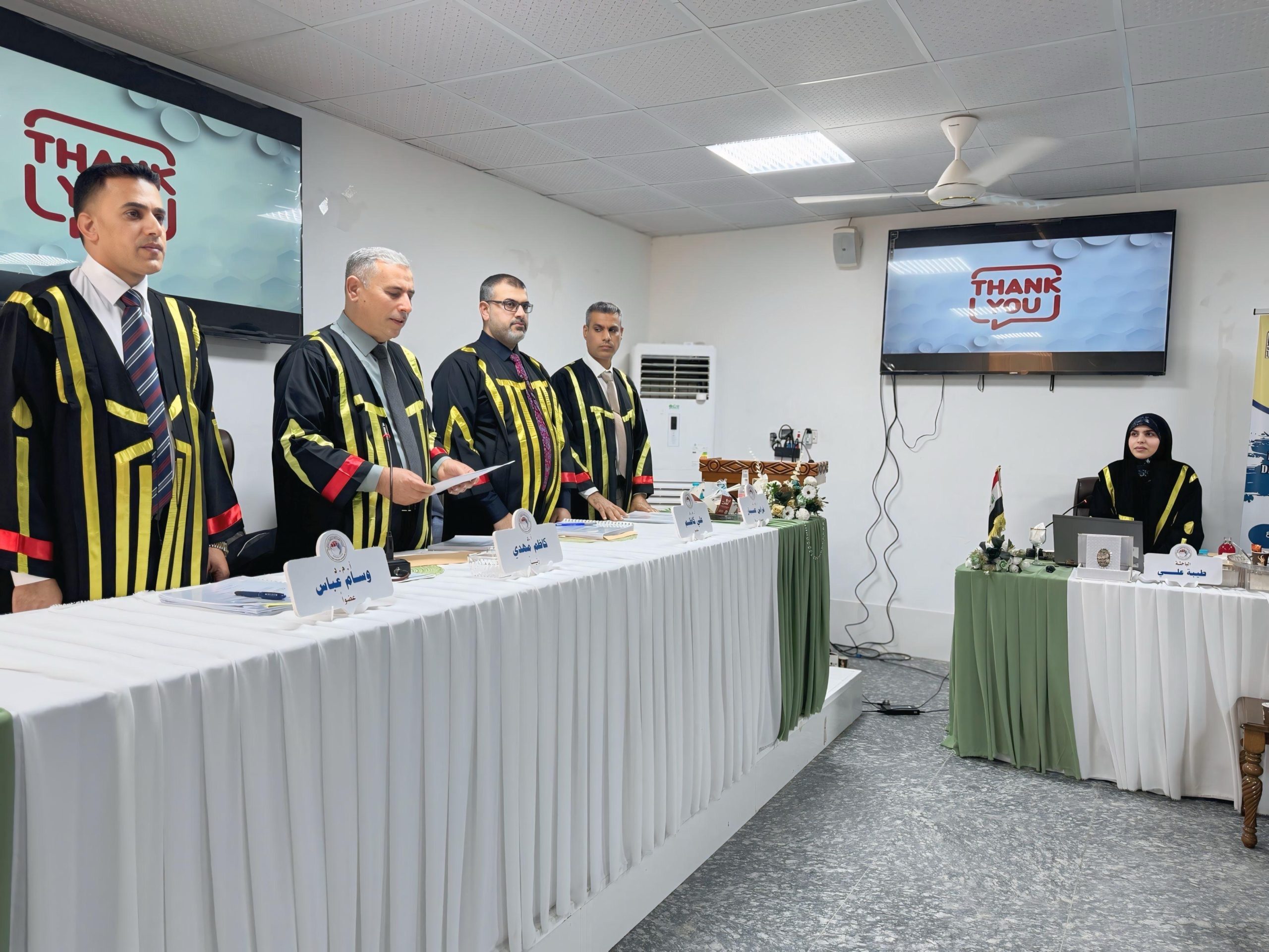 وجرت المناقشة بحضور عميد كلية التربية للعلوم الصرفة الأستاذ الدكتور عماد عبد الرزاق سلمان المحترم.