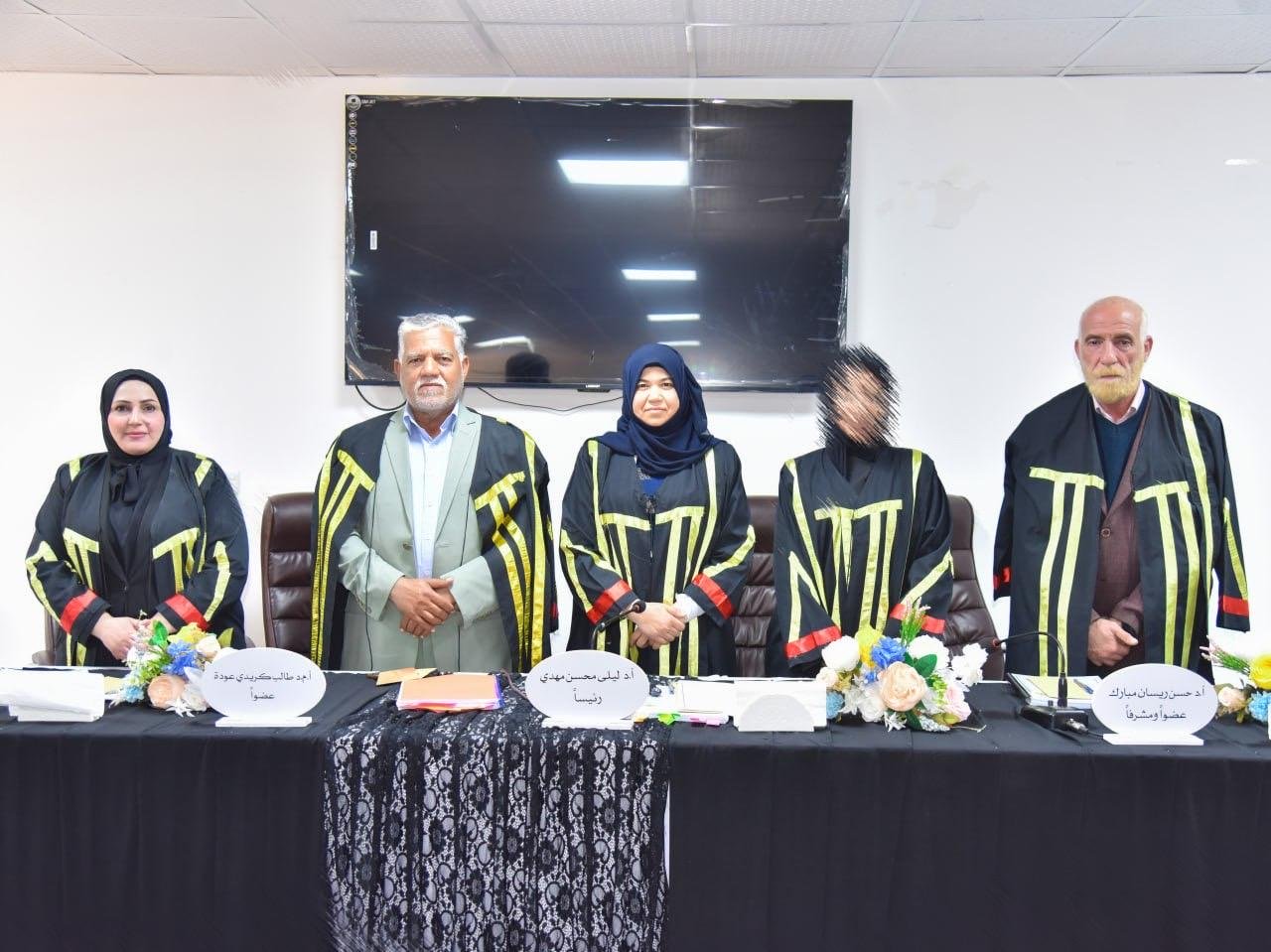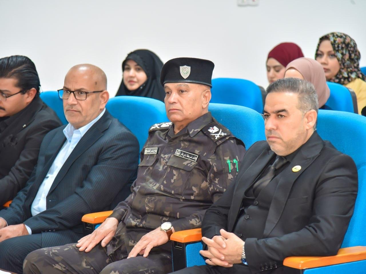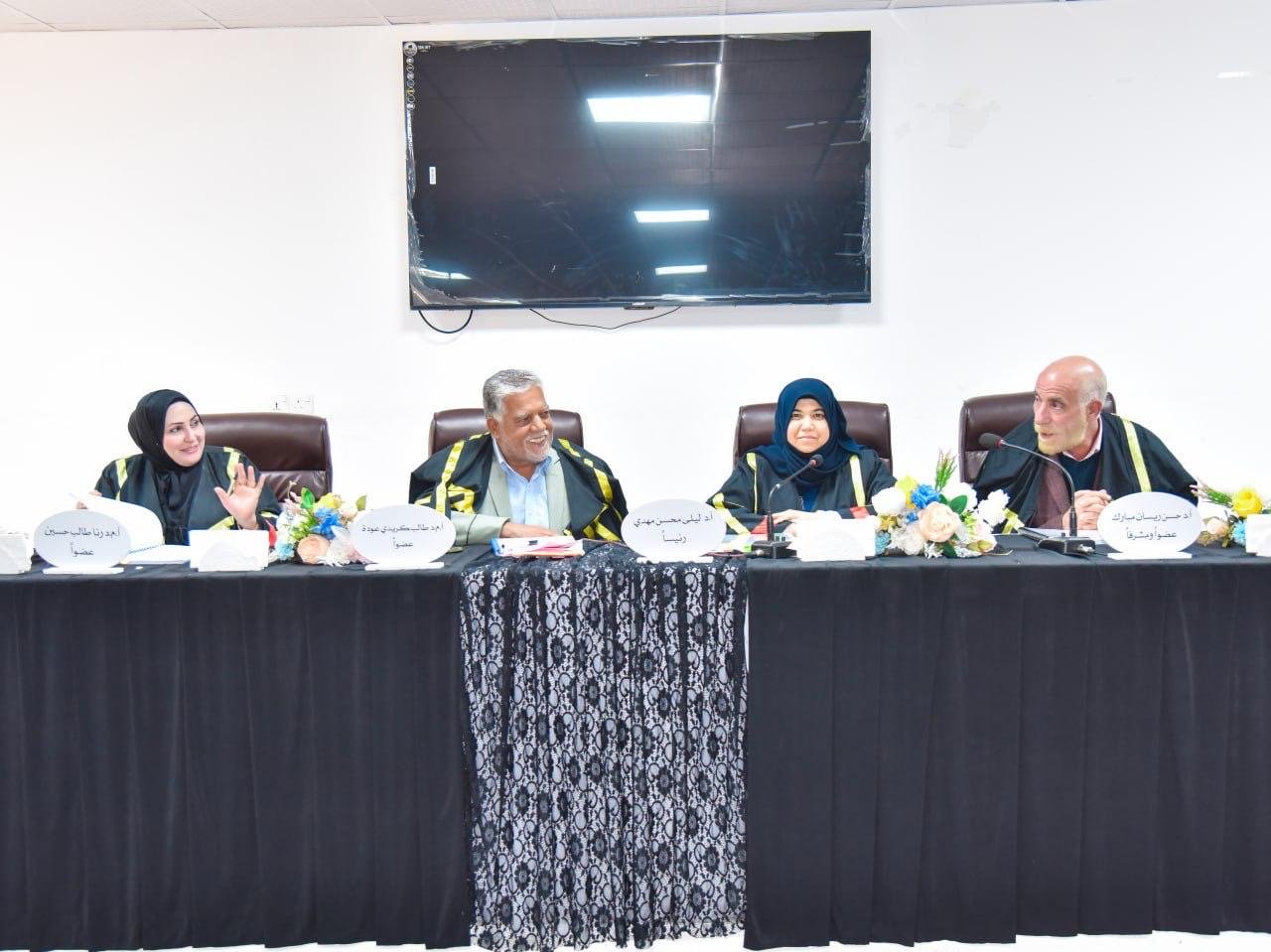 وجرت المناقشة بحضور عميد كلية التربية للعلوم الصرفة الأستاذ الدكتور عماد عبد الرزاق سلمان المحترم وبمشاركة قائد شرطة محافظة ذي قار اللواء نجاح العابدي المحترم